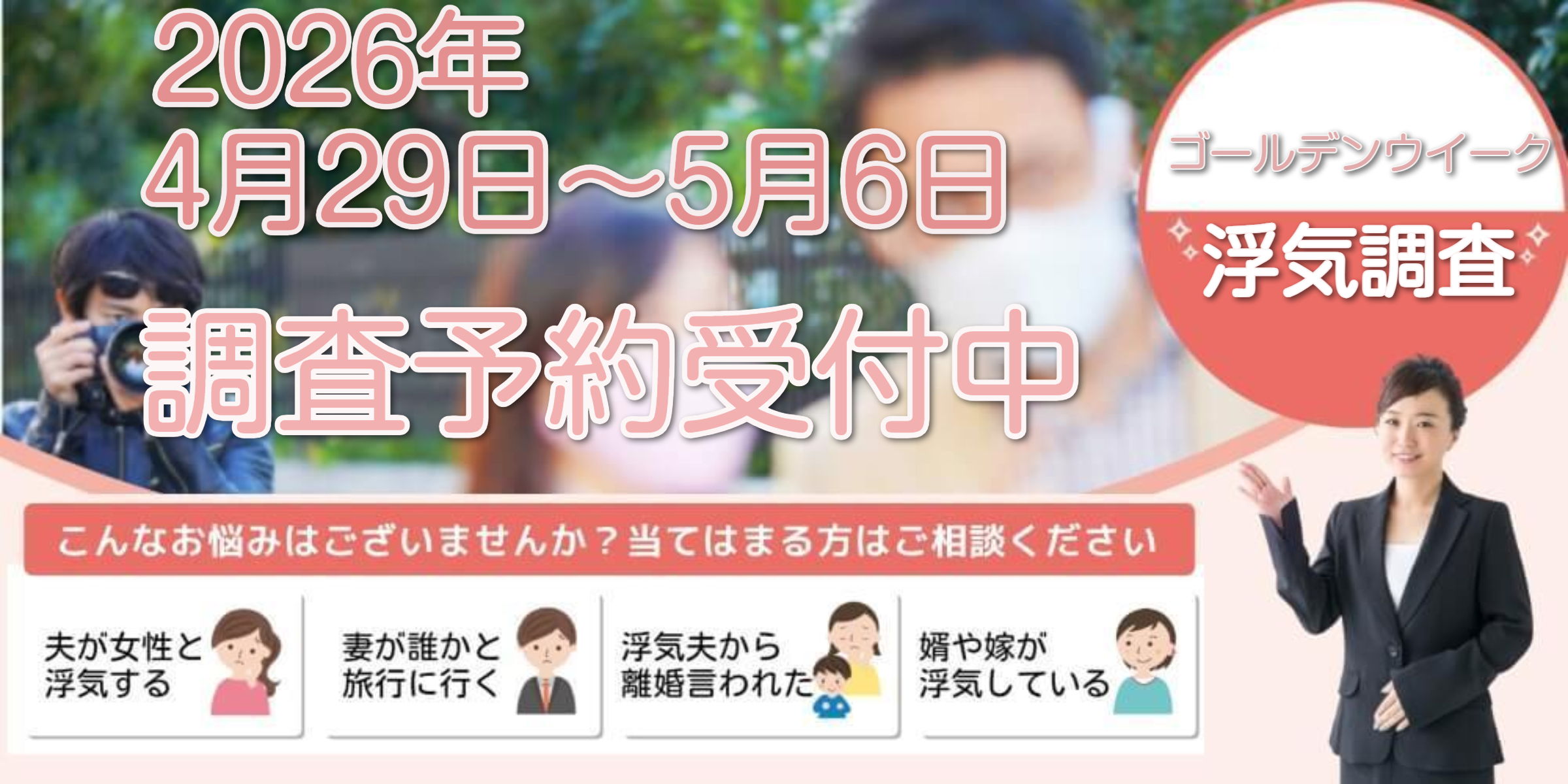 2026年のゴールデンウイーク(4/29〜5/6)は、 東京都内で浮気・不倫の証拠が最も撮れやすい期間 です。